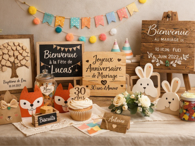 Je vous propose des créations événementielles artisanales uniques, réalisées avec passion et savoir-faire.