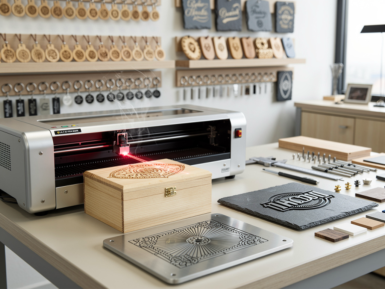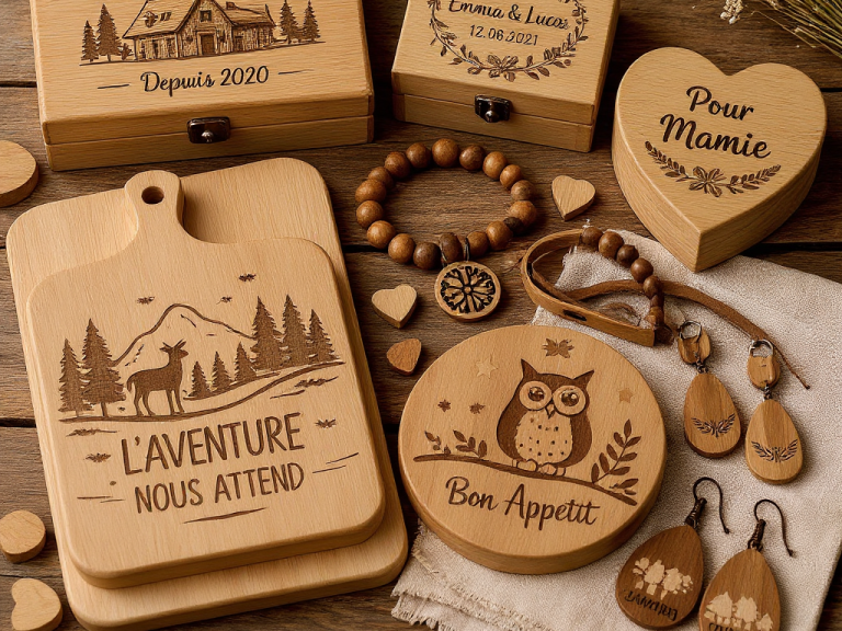 Technologie d'impression laser sur bois, métal et ardoise pour des designs exceptionnels.